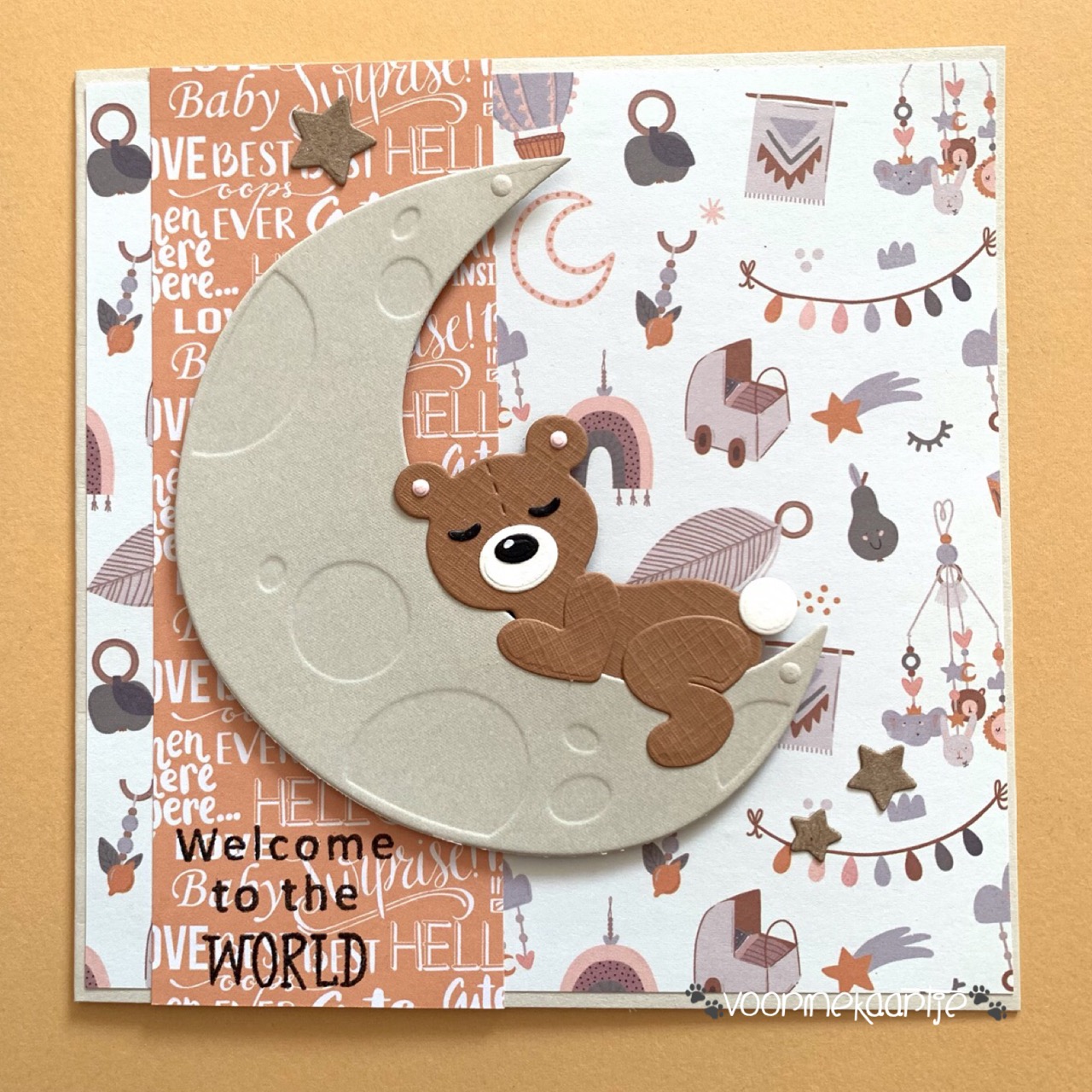 Hoi hoi, vandaag wil ik jullie graag dit babykaartje laten zien. Heb het heel neutraal gehouden zodat het naar een jongen of meisje gestuurd kan worden.
